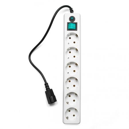 оснащено 6 евророзетками с заземлением и выключателем питания.