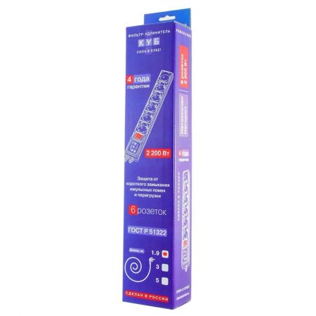 Сетевой фильтр Power Cube предназначен для подключения к электросети компьютерной, домашней и офисной электротехники. Устройство оснащено 5 евророзетками с заземлением, одной дополнительной розеткой для подключения вилок без заземления, а также выключателем со светодиодной индикацией и коммутацией двух проводников (фазы и нуля). Защита от превышения максимально допустимого тока, короткого замыкания и ослабление импульсных помех предохранит подключаемую технику от повреждений. Корпус модели выполнен из высококачественного негорючего пластика и имеет крепежные отверстия.