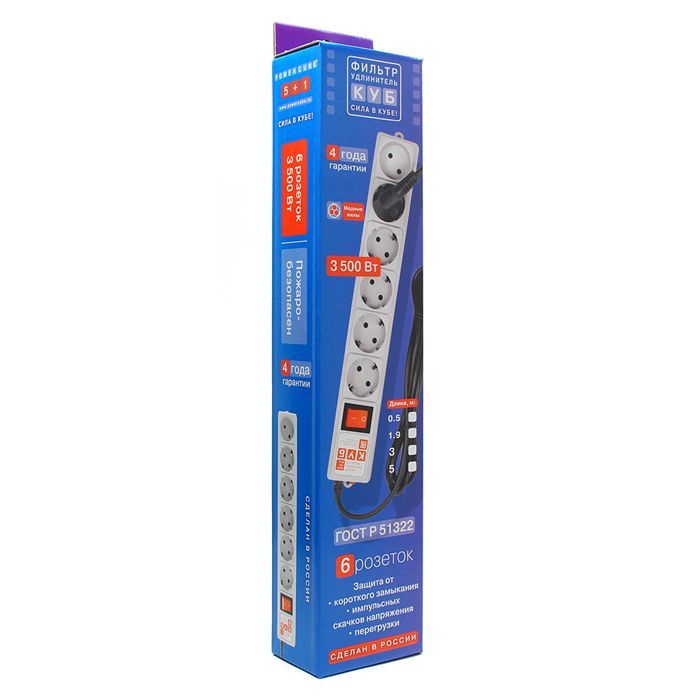Сетевой фильтр Power Cube предназначен для подключения и защиты всех видов бытовой, офисной и компьютерной техники. Устройство оснащено 5 евророзетками с заземляющими контактами и одной дополнительной розеткой без заземляющих контактов. Благодаря предохранителю на 16 А и проводу с сечением 3x1 к нему можно одновременно подключать мощные электробытовые приборы: чайник, мультиварку, СВЧ-печь и т.п., что делает его совершенно незаменимым на современных кухнях. В фильтре использован двухполюсный выключатель со светодиодной индикацией и провод из чистой меди, соответствующий ГОСТ. В устройстве предусмотрена защита от превышения максимально допустимого тока, короткого замыкания и импульсных помех. Корпус модели выполнен из высококачественного негорючего пластика и имеет удобные крепежные отверстия.