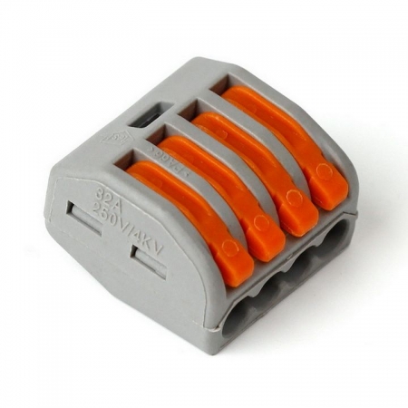 Строительно-монтажная клемма предназначена для соединения четырех проводников сечением 0.5-4 мм2. Пружинный зажим клеммы обеспечивает надежный и долговечный контакт. Наличие технологического отверстия позволяет проверять наличие электрического контакта между проводниками. Преимуществом строительно-монтажных клемм перед другими видами электрических соединений является простота монтажа и надежная защита от контакта с токоведущими частями. Цена указана за 50 шт
