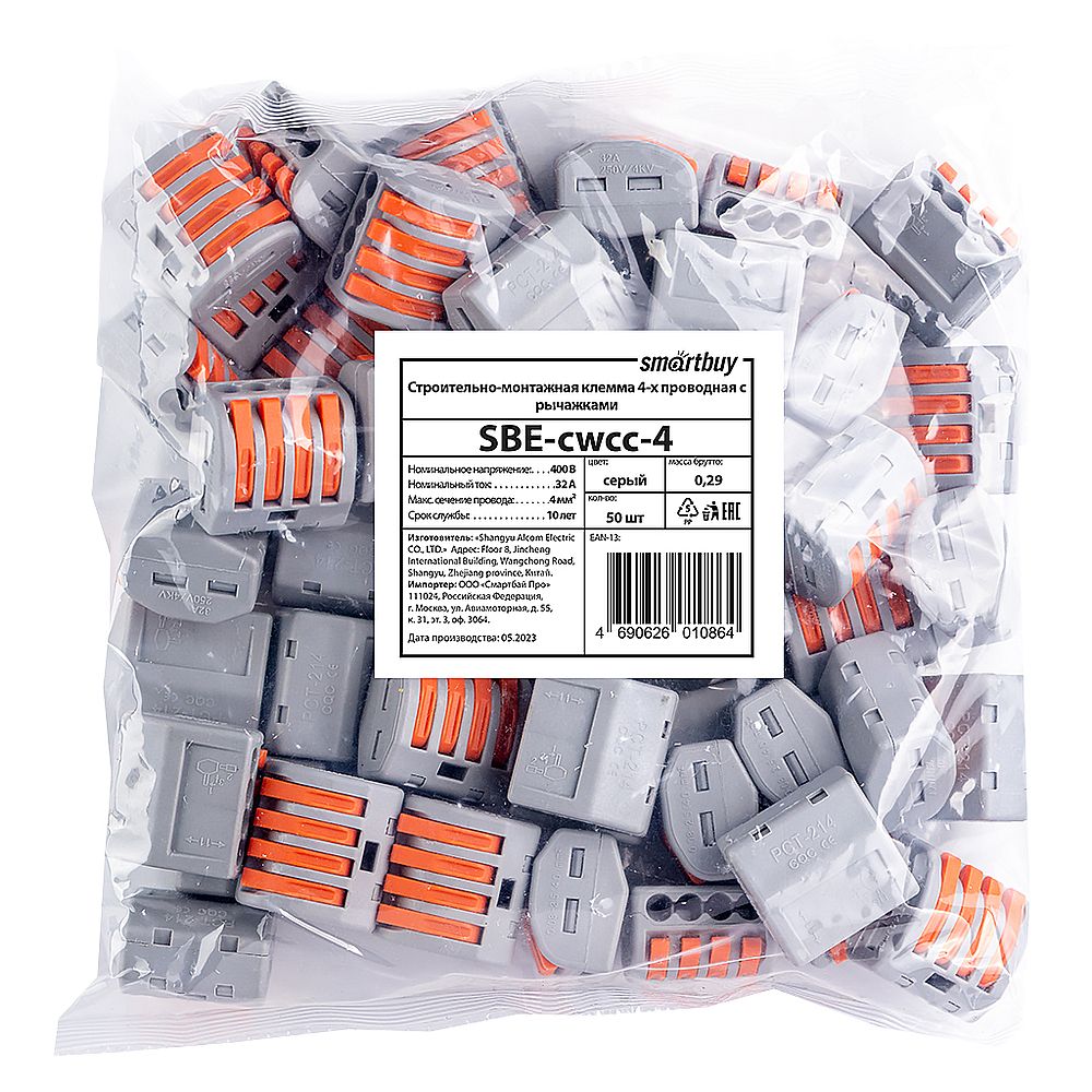 Производитель: Smartbuy Наименование: Строительно-монтажная клемма с рычажками Количество зажимов(подключаемых проводников): 4 Максимальное напряжение: 380 В Номинальный ток: 32 А Максимальная мощность: 7000 Вт Минимальное сечение кабеля: 0.5 мм2 Максимальное сечение провода: 4 мм2 Цвет: Серый/оранжевый Кол-во в упаковке: 50 шт