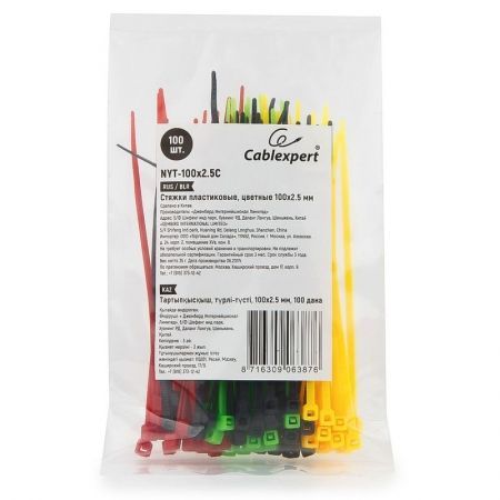 Стяжки нейлоновые Cablexpert 2.5 x100 мм предназначены для быстрого, удобного способа бандажирования и крепления кабеля. В упаковке 100 шт (4 цвета по 25 шт). Технические характеристики