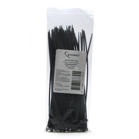 Производитель: Gembird/Cablexpert Наименование: Стяжки для кабеля морозостойкие Материал: Нейлон Размеры: 3.6 x 250 мм Количество: 100 шт Цвет: Черный