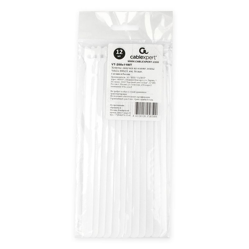 Производитель: Cablexpert Наименование: Хомуты-липучки Размеры: 11 х 200 мм (ш х д) Кол-во в упаковке: 12 шт. Цвет: белый