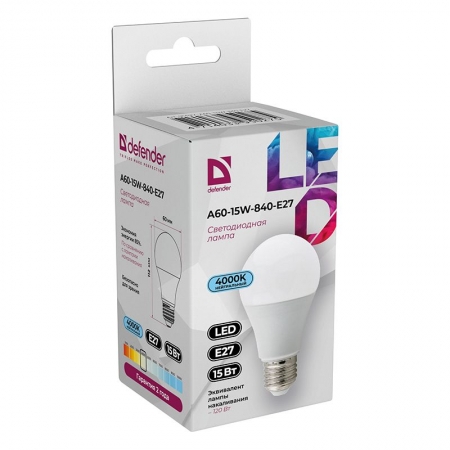 Лампочка Defender A60 груша 15 Вт предназначена для использования в