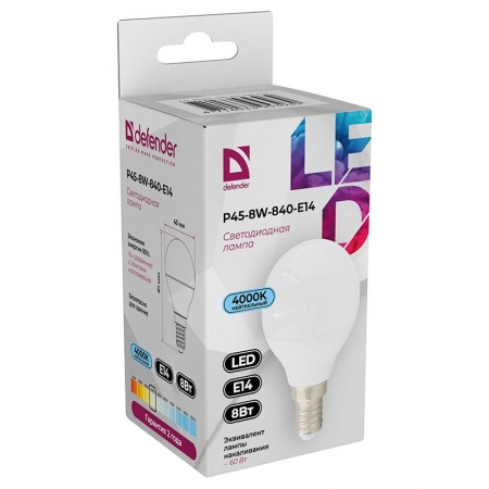 Лампочка Defender P45 шар 8 Вт предназначена для использования в