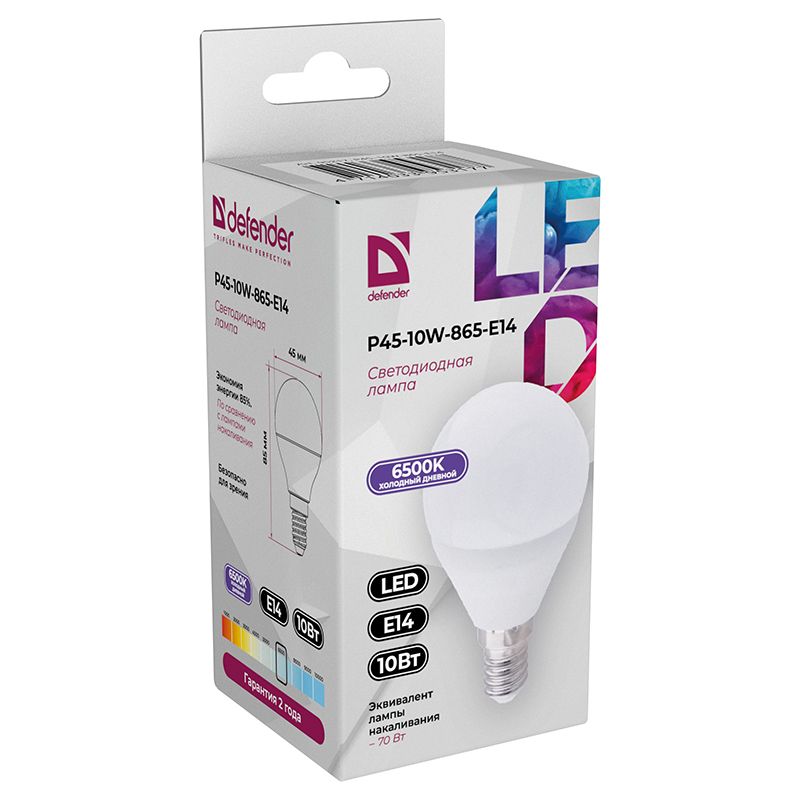 Лампочка Defender P45 шар 10 Вт предназначена для использования в