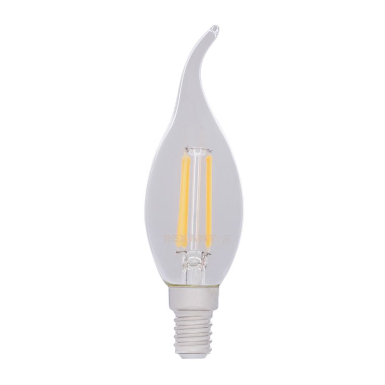 Филаментная прозрачная лампа REXANT CN37 в форме свечи на ветру