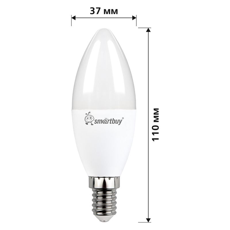 Smartbuy С37 - энергосберегающая светодиодная лампа общего или декоративного освещения, подходит для замены стандартных ламп накаливания и галогенных. Благодаря своей экономичности, длительному сроку службы и экологичности она выгодно отличаются от обычной лампы накаливания. Лампа С37 повторяет форму и размеры стандартных ламп типа «свеча» и идеально подходит к любому светильнику, в котором используются данные типы ламп. Колба лампы имеет матовую поверхность и оснащена цоколем E14. Хорошая цветопередача и отсутствие мерцания обеспечивают меньшую утомляемость глаз. В лампе применяется высокоэффективный драйвер с ресурсом работы до 30 000 часов. Не содержит ртути и экологически безопасна. Особенности