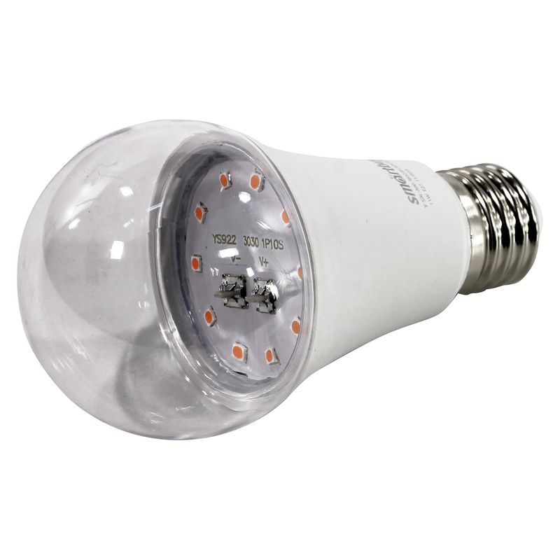 Светодиодная лампа для растений Smartbuy Фито предназначена для применения в садоводстве, при озеленении помещений, при выращивании посевного материала (рассады) в условиях недостатка или отсутствия солнечного света. Использование светодиодов снижает испарение, увеличиваются интервалы между поливами. Лампа излучает сбалансированный свет для растений, который способствует укреплению стебля и росту плотных листьев.