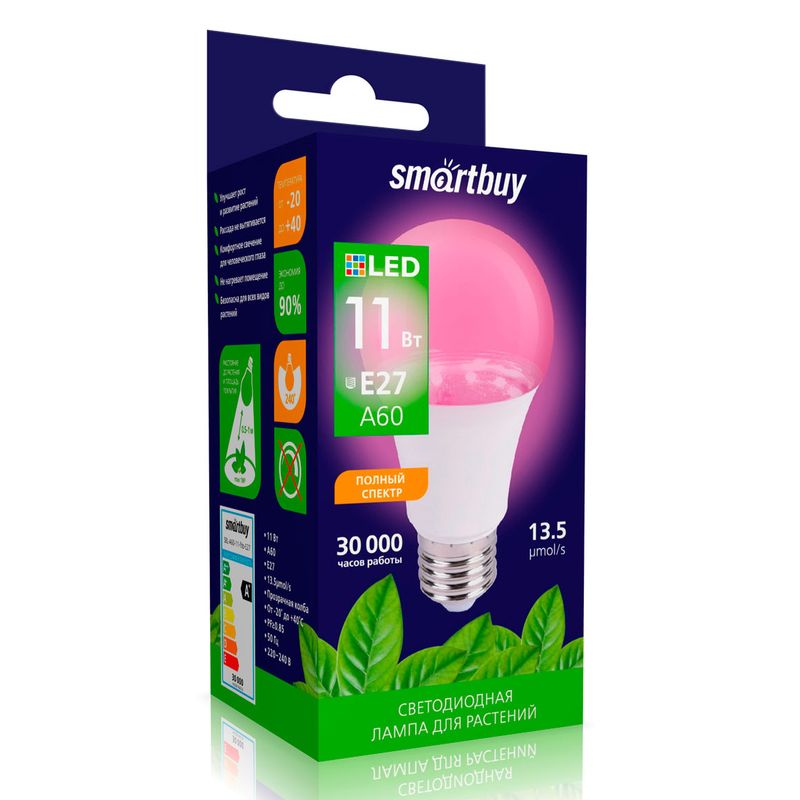 Светодиодная лампа для растений Smartbuy ФИТО A60 11W/E27 (SBL-A60-11-fito-E27)