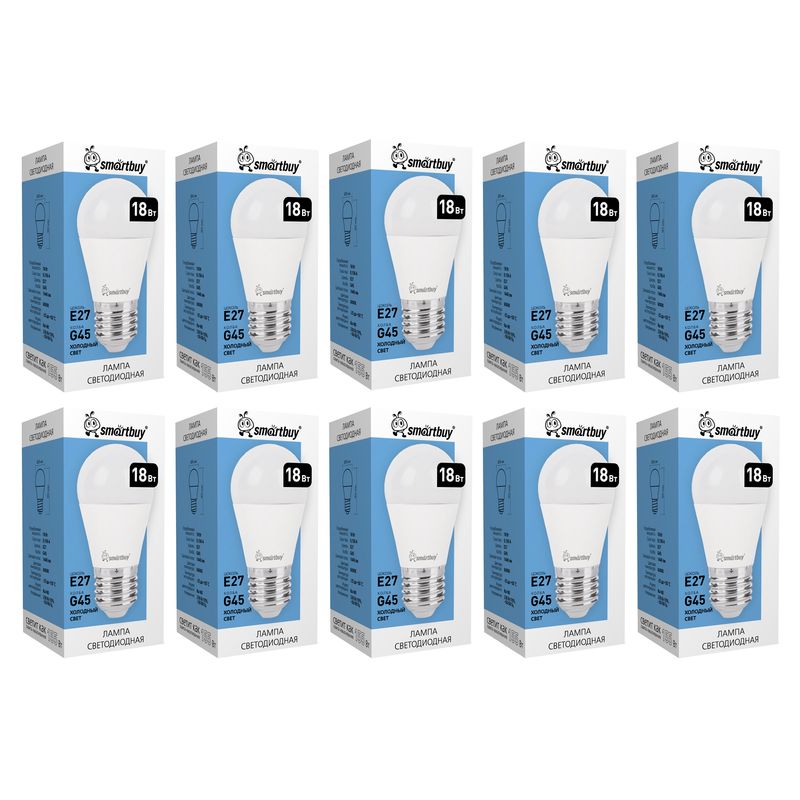 Светодиодная (LED) лампа Smartbuy G45 18W/6000/E27, 10 шт (SBL-G45-18-60K-E27)
