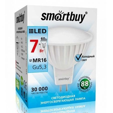 Энергосберегающая светодиодная лампа направленного света Smartbuy Gu5.3 широко используется в помещениях - в различных точечных потолочных светильниках, для украшения витрин, в рекламных конструкциях, вывесках и многом другом. Она повторяет форму и размеры стандартных галогенных ламп MR16, PAR16 и идеально подходит к любому светильнику, в котором используются данные типы ламп. Хорошая цветопередача и отсутствие мерцания обеспечивают меньшую утомляемость глаз. Угол освещения составляет от 40 до 60 градусов.  В лампе применяется высокоэффективный драйвер с ресурсом работы до 30 000 часов. Не содержит ртути и экологически безопасна.