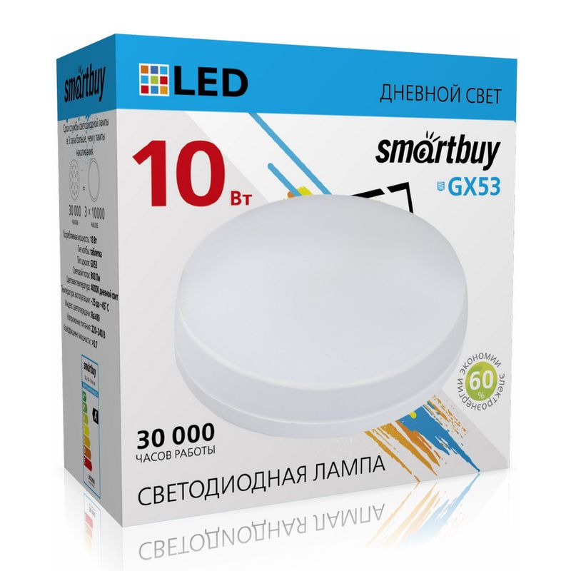 Smartbuy GX53 - светодиодная энергосберегающая лампа с матовым рассеивателем, предназначена для общего, локального и декоративного освещения. Лампа с цоколем GX53 выполнена в форме цилиндра, она идеально подходит к любому светильнику, в котором используются данный типы ламп. Матовая поверхность колбы обеспечивает равномерную освещенность и защищает глаза от слепящего света. Отсутствие мерцания и бесшумная работа позволяют говорить о высоком качестве изделий, рассчитанных минимум на 30 тысяч часов работы. Не содержит ртуть, экологически безопасна.