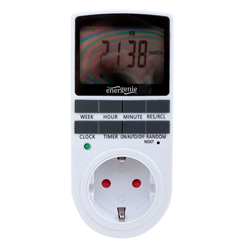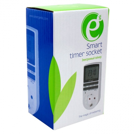 Цифровой таймер Energenie EG-SST-01 предназначен для программного управления электробытовыми приборами. С его помощью можно настроить автоматическое включение и выключение электроприборов по требуемому графику. Модель имеет 10 отдельных программируемых таймеров вкл/выкл и оснащена большим LCD-дисплеем, отображающим текущее время, дни недели и режим работы. Наличие встроенного аккумулятора позволяет сохранять заданные настройки в случае отключения электропитания. Прибор подключается непосредственно в розетку и оборудован розеткой с защитными шторками. Особенности