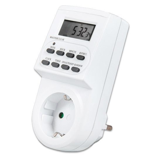 Электронный таймер Smartbuy SBE-STE-1 позволит легко настроить автоматическое включение и выключение ваших устройств и приборов по требуемому графику. Они будут работать без вашего участия, точно в нужное время. А это поможет аквариумистам, любителям комнатных растений, при управлении освещением и работе с такими приборами как увлажнители воздуха, бактерицидные лампы и др. Таймер оснащен ЖК-дисплеем, отображающим текущее время, дни недели и заданные настройки. Программируется на 7 дней, 12 или 24 часа, имеет 10 программ работы прибора с одноминутным шагом. Функция произвольного включения от 10 до 31 минуты между 18:00 и 6:00 позволяет создать «эффект присутствия» при отсутствии вас дома. Встроенный Ni-MH аккумулятор дает возможность сохранять заданные настройки в случае отключения электропитания. Таймер подключается непосредственно в розетку и имеет защиту от детей.