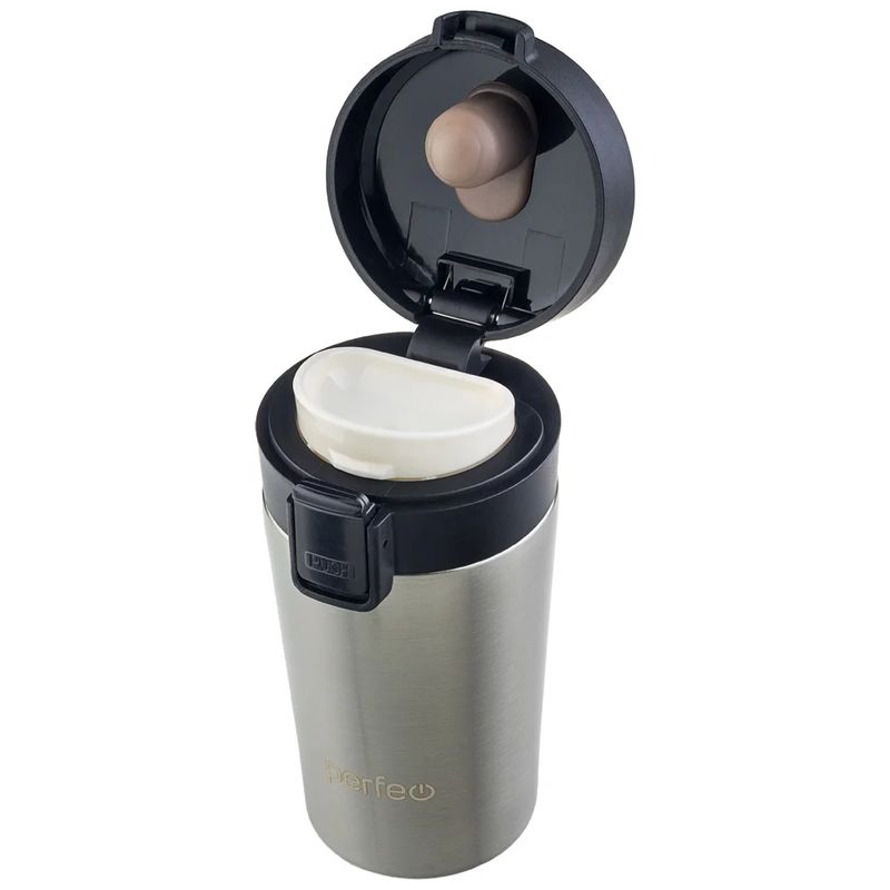 Термокружка для напитков с крышкой-поилкой и ситечком. Эргономичная система открывания крышки-поилки дает возможность использования одной рукой. Встроенное ситечко фильтрует напиток от твердых частиц. Ударопрочный корпус выполнен из высококачественной нержавеющей стали. Для Вашей безопасности, внутренние стенки колбы изготовлены из пищевой высоколегированной нержавеющей стали SUS 304. Термокружку удобно держать в руке, она подходит для большинства отделений для бутылки в рюкзаках и держателей для стакана в машине.