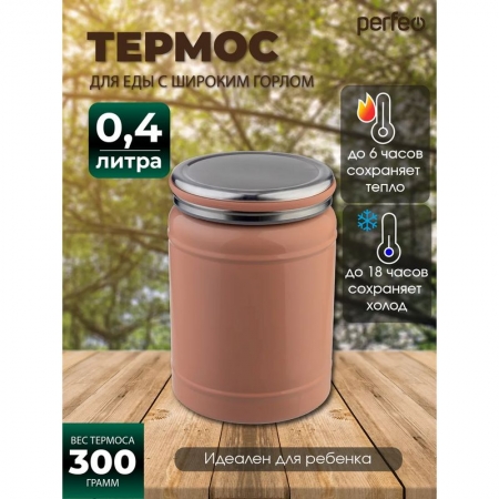 Производитель: Perfeo Наименование: Термос Тип термоса: Для еды Особенности: Широкое горлышко Материал корпуса: Высококачественная нержавеющая сталь Объем: 0.4 л Цвет: Розовый Вес: 300 г