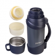 Термос для напитков с крышкой-поилкой и ситечком, объем 1.6 л. Теперь заваривать шиповник, чай или кофе станет намного проще! Встроенное ситечко фильтрует напиток от твердых частиц. Двойные стенки колбы сохранят Ваши напитки теплыми или холодными длительное время. Ударопрочный корпус выполнен из высококачественной нержавеющей стали. Для Вашей безопасности, внутренние стенки колбы изготовлены из пищевой высоколегированной нержавеющей стали SUS 304. С удобной ручкой для переноски, а так же ремешком для переноски на плече. Идеален для активных людей, незаменим в походе и на рыбалке.