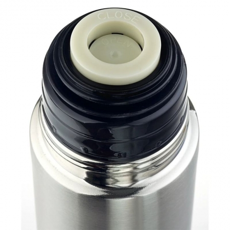 Термос для напитков с узким горлом и пробкой. Пробка с кнопкой позволяет