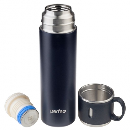 Термос для напитков с пробкой-кнопкой, крышкой-кружкой, 0,5 л., черный, Perfeo (PF_D0212)