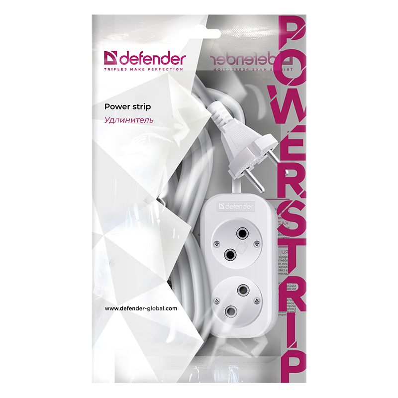 Удлинитель сетевой Defender B220 на 2 розетки без заземления