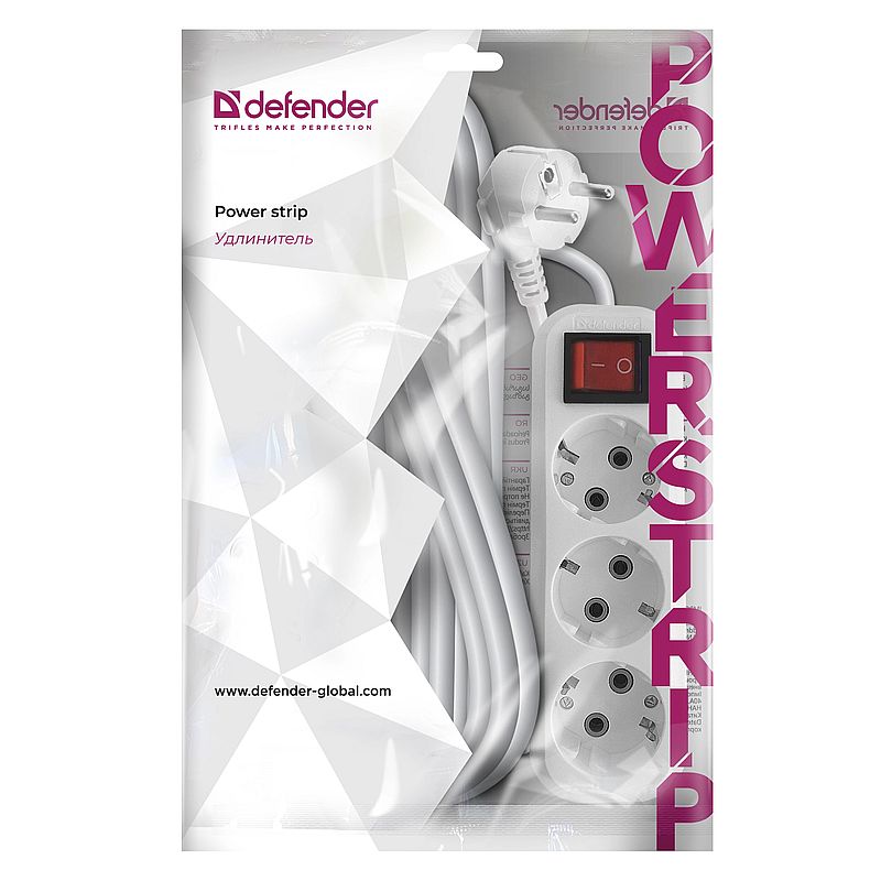 Главная / Электропитание / Сетевые фильтры и удлинители / Удлинитель сетевой Defender L330, 15 м, 3 розетки с заземлением, выключатель, 3500 Вт, белый (99358)