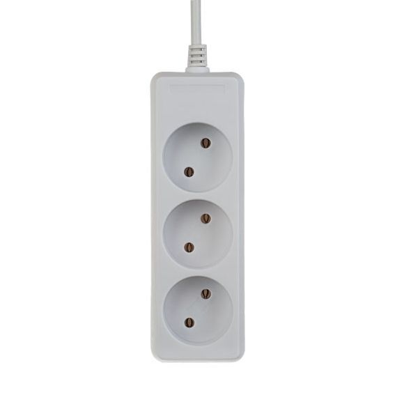 220В. Удлинитель оснащен 3 розетками без заземления. Максимальный