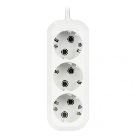 нагреватели, микроволновые печи. Изделие оснащено тремя евророзетками с заземляющими контактами. Корпус удлинителя выполнен из ударопрочного и негорючего пластика. На