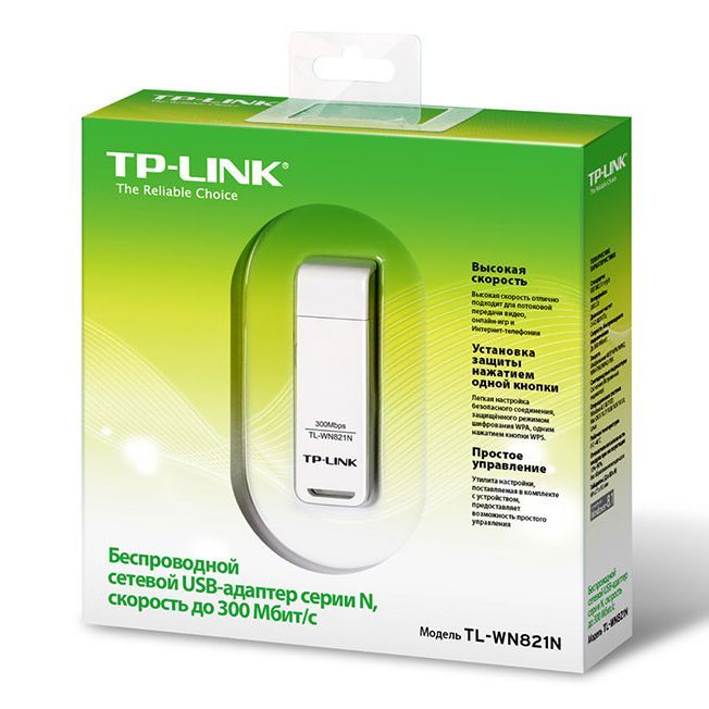 Беспроводной сетевой USB-адаптер серии N TP-Link TL-WN821N позволит вам подсоединить настольный компьютер или ноутбук к беспроводной сети и воспользоваться доступом в Интернет по высокоскоростному подключению. Сетевой адаптер поддерживает стандарт IEEE 802.11n со скоростью передачи данных по беспроводному подключению до 300 Мбит/с, идеальной для онлайн-игр и даже потокового видео высокой четкости.