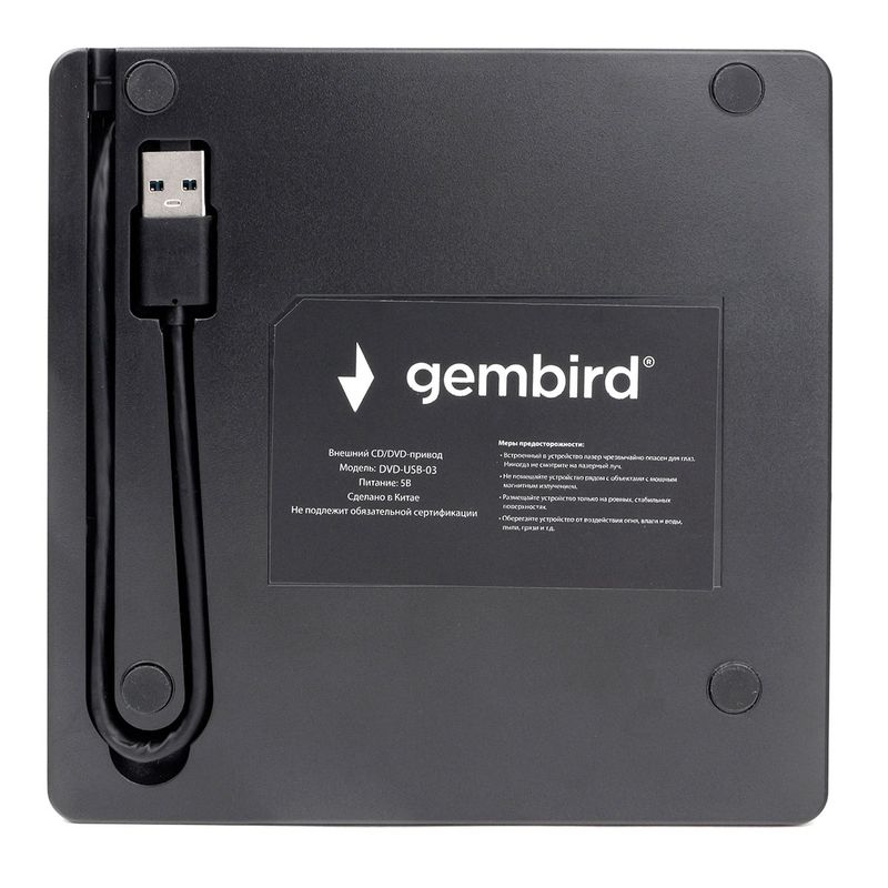 USB Внешний DVD-привод Gembird DVD-USB-03 пластик, черный, USB 3.0