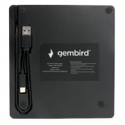 Gembird DVD-USB-04 - внешний CD/DVD-привод со встроенным кардридером и хабом. Устройство поддерживает режим Plug n Play и совместимо с 80/120 мм дисками различных форматов. На задней панели привода расположены слоты для карт памяти SD и MicroSD, а также разветвитель на два порта USB 2.0. Привод подключается к компьютеру через интерфейс USB 3.0 Type A или Type C. Тонкий дизайн, небольшой вес и укороченный USB-кабель делают его идеальным для использования с ноутбуком.