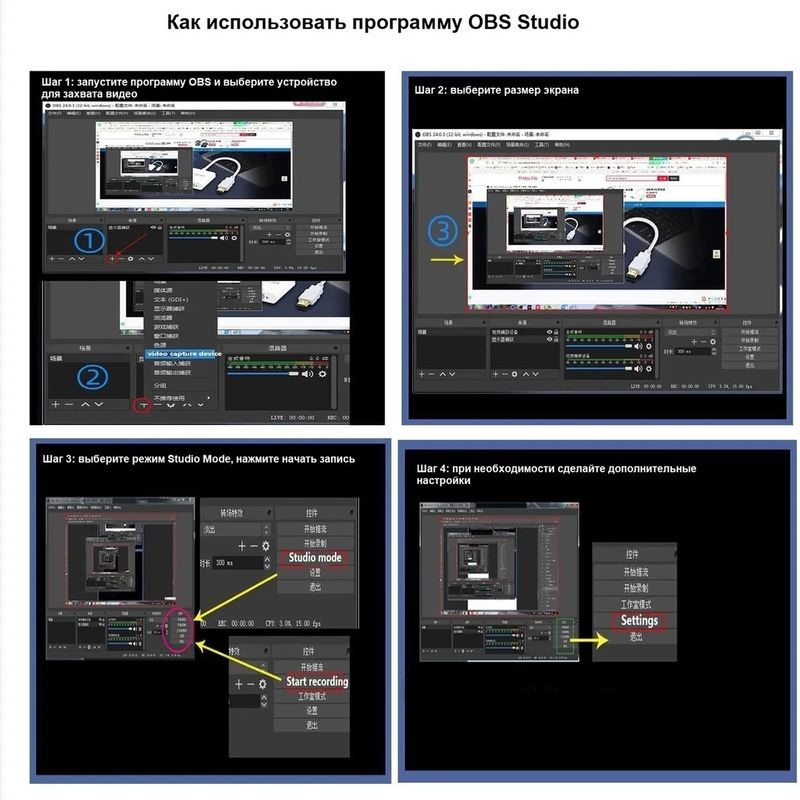 Для максимально эффективной работы USB HDMI адаптера захвата видео (в том числе поддержки частоты кадров 60fps) рекомендуется использовать программное обеспечение OBS 26.1.1 и выше.