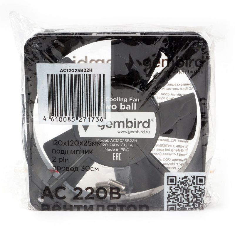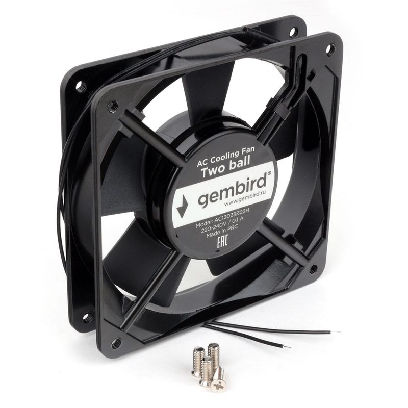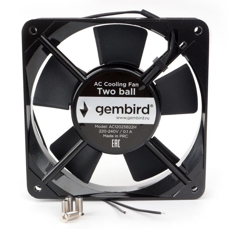 Вентилятор 120 х 120 х 25 мм, Gembird AC12025B22H. Питается от сети переменного тока с напряжением 220-240В. Корпус из алюминия и конструкция с использованием подшипника обеспечивают продолжительный срок службы вентилятора.