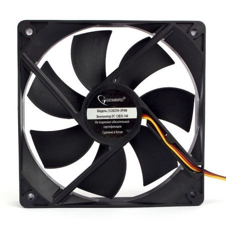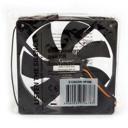 Вентилятор Gembird S12025H-3P4M, 120 x 120 x 25 мм. Питается от 12В, подключается к 3-pin коннектору или 4 pin Molex. Оснащен датчиком оборотов. Скорость вращения 2000 оборотов в минуту. Благодаря использованию гидродинамического подшипника вентилятор обладает пониженным уровнем шума. В комплект входят: переходник питания, резиновые и металлические винты.