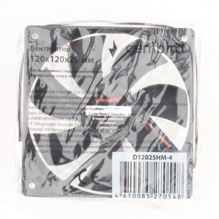 Вентилятор 120 х 120 х 25 мм, Gembird D12025HM-4. Питается от 12В, имеет