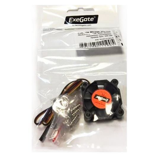 Вентилятор 30 x 30 x 10 мм, Exegate EX03010S3P. Вентилятор питается от 12В, имеет датчик оборотов и подключается к 3-pin коннектору. Технические характеристики