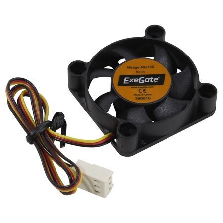 Вентилятор 40 х 40 х 10 мм, Exegate EX04010S3P. Вентилятор питается от 12В, имеет датчик оборотов и подключается к 3-pin коннектору.