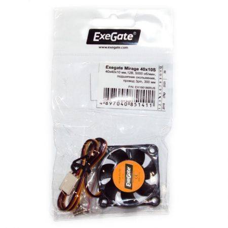 Вентилятор 40 x 40 x 10, 3 pin, 12V, 5500 об/мин, втулка, кабель 30 см, Exegate (EX04010S3P)