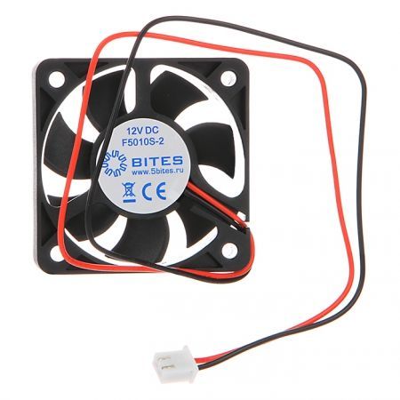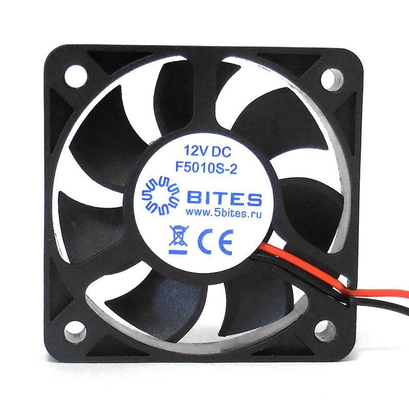 Вентилятор 50 x 50 x 10 мм, 5bites F5010S-2. Вентилятор питается от 12В и подключается к 2-pin коннектору.