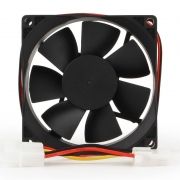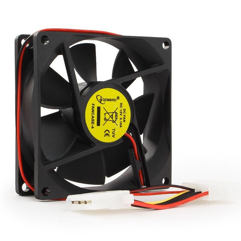 Вентилятор 80 х 80 х 25 мм, Gembird FANCASE-4. Вентилятор питается от 12В и подключается к 4-pin разъему Molex.
