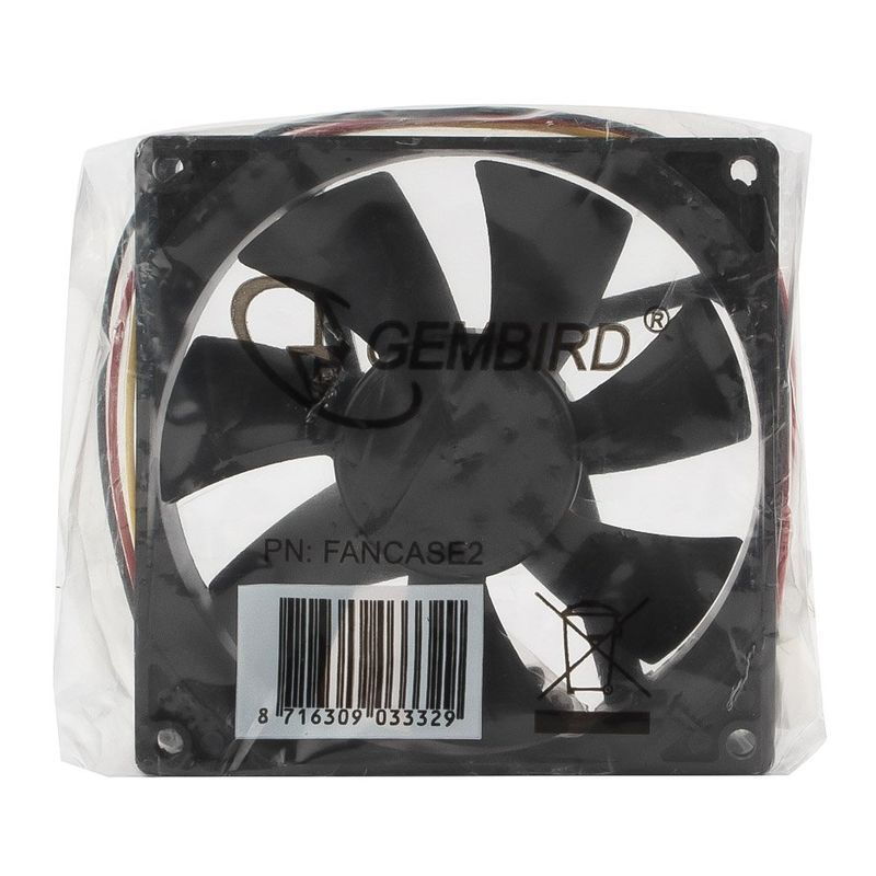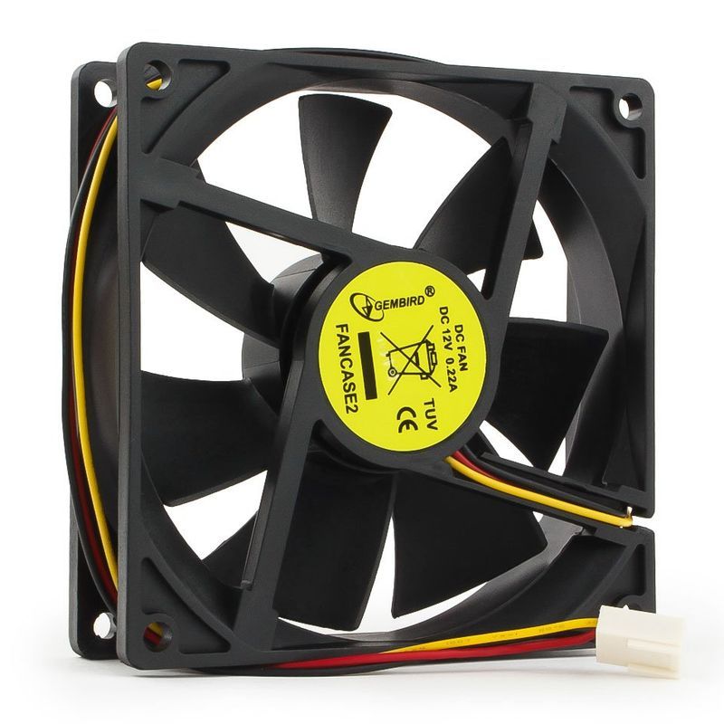 Вентилятор 92 х 92 х 25 мм, Gembird FANCASE2. Вентилятор питается от 12В, имеет датчик оборотов и подключается к 3-pin коннектору.