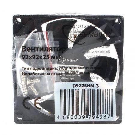 Вентилятор 92 x 92 x 25, 3 pin, 12V, гидродинамич. подшипник, кабель 30 см, Gembird (D9225HM-3)