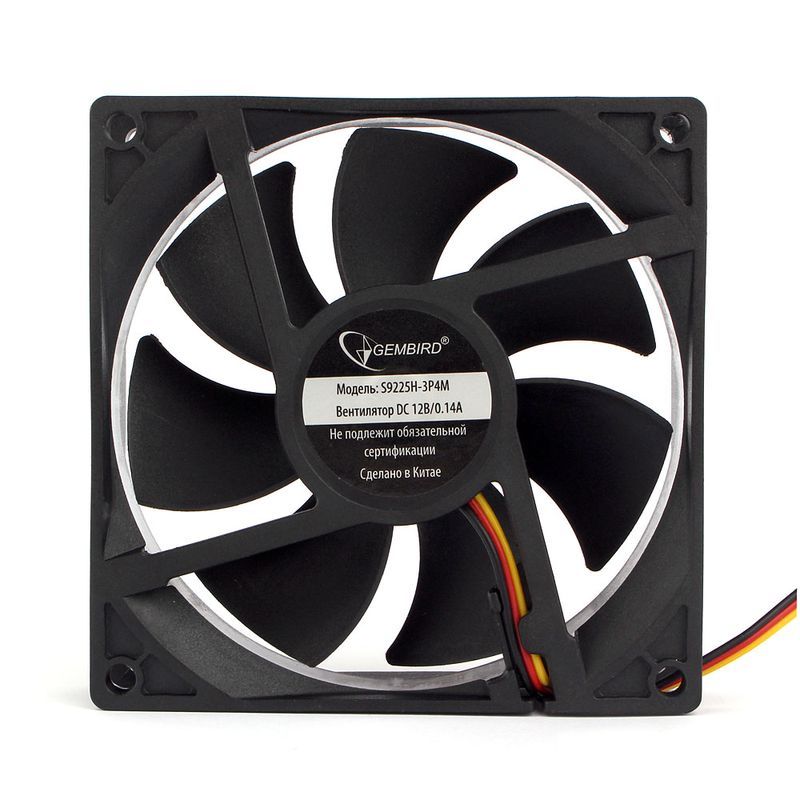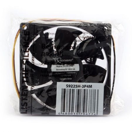 Вентилятор Gembird S9225H-3P4M, 92 x 92 x 25 мм. Питается от 12В, подключается к 3-pin коннектору или 4 pin Molex. Оснащен датчиком оборотов. Скорость вращения 2000 оборотов в минуту. Благодаря использованию гидродинамического подшипника вентилятор обладает пониженным уровнем шума. В комплект входят: переходник питания, резиновые и металлические винты.