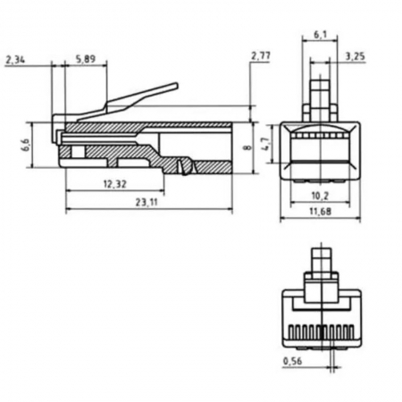 Главная / Кабели, разъемы, адаптеры / Адаптеры, переходники, разъемы / Телефонные RJ11-12 / Вилка телефонная 10p10c для сканеров штрих кода, 50 шт, Premier (6-010)