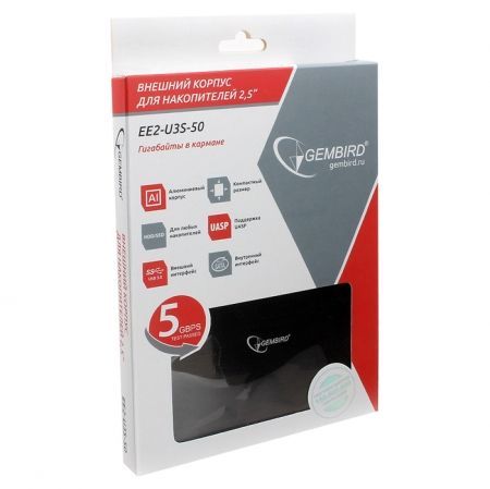 Внешний контейнер Gembird EE2-U3S-50 предназначен для установки 2.5" S-ATA жесткого диска емкостью до 2 Тб. Устройство поддерживает высокоскоростной интерфейс USB 3.0 со скоростью передачи данных до 5 Гбит/сек. Использование протокола UAS на 20 % повышает скорость передачи данных по сравнению с протоколом USB Mass Storage. Прочный алюминиевый корпус контейнера предохраняет жесткий диск от повреждений и эффективно отводит тепло. В комплект входят кабель для подключения к компьютеру, отвертка, крепежные винты и мягкий чехол для хранения. Особенности