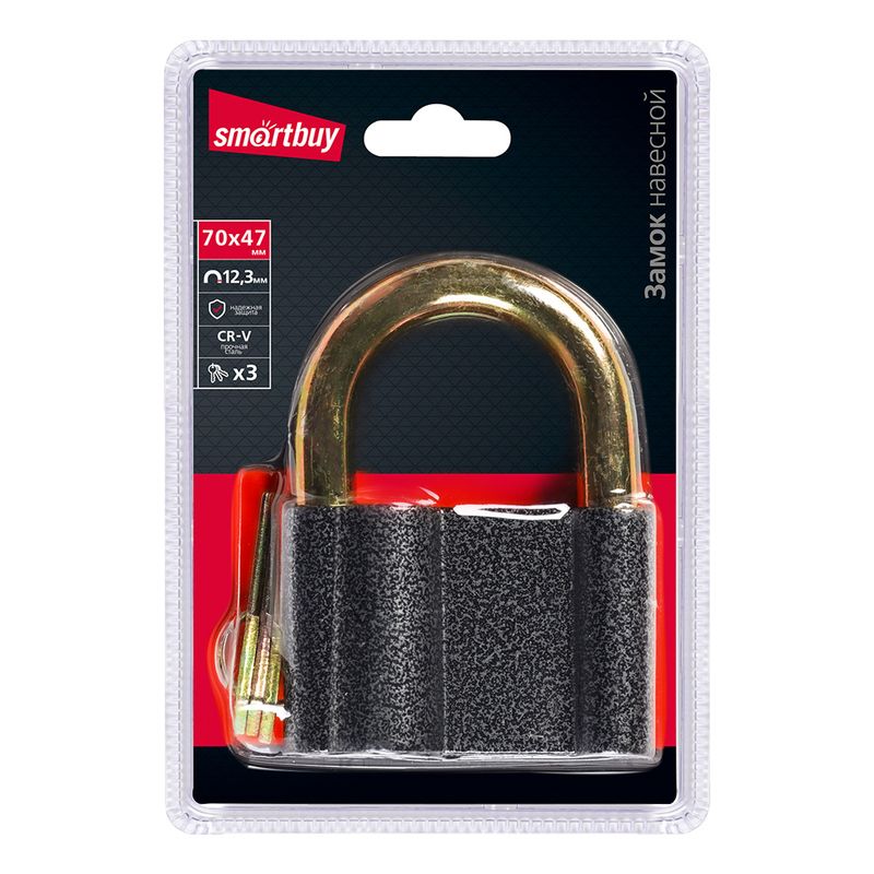 Производитель: Smartbuy Наименование: Замок навесной Тип механизма: Цилиндровый Материал: Сталь CR-V Цвет: Черный Диаметр дужки: 12.3 мм Размеры: 70х47 мм Вес: 245 г Комплектация