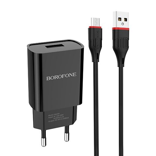 Производитель: Borofone Наименование: Сетевое зарядное устройство Входное напряжение: 110-240В 50/60 Гц Выходное напряжение: 5В Выходной ток: 2.1А (макс.) Максимальная мощность: 10.5 Вт Кол-во USB-портов: 1 Длина кабеля: 1 м Защита: От перенапряжения, перегрузки и перегрева Материал корпуса: Термостойкий противоударный пластик Цвет: Черный Размеры: 79 x 38 x 24 мм Вес: 28 г