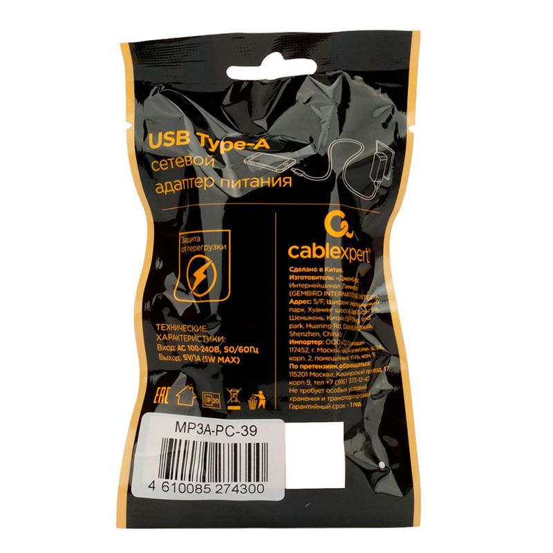 Адаптер питания Cablexpert MP3A-PC-39 используется для зарядки портативной техники от электросети 100-240В. Устройство оснащено USB-портом с выходным током 1А. Компактные размеры дают возможность использовать ЗУ в поездках.
