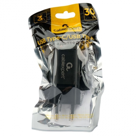 Производитель: Cablexpert Наименование: Сетевое зарядное устройство Входное напряжение: 110-240В 50/60 Гц Выходное напряжение: Выход USB C: 5 В/3 A, 9 В/3 A, 12 В/2.5 A, 15 В/2 A; 30 Вт Выход USB A: 5 В/3 A, 9 В/2 A, 12 В/1.5 A; 18 Вт При использовании двух портов: 5 В/3.6 A; 18 Вт Максимальная выходная мощность: 30 Вт Поддержка быстрой зарядки: QC 2.0/3.0, PD, FCP, AFC Кол-во USB-портов: 1xUSB A, 1xUSB C Материал корпуса: Термостойкий противоударный пластик Цвет: Чёрный